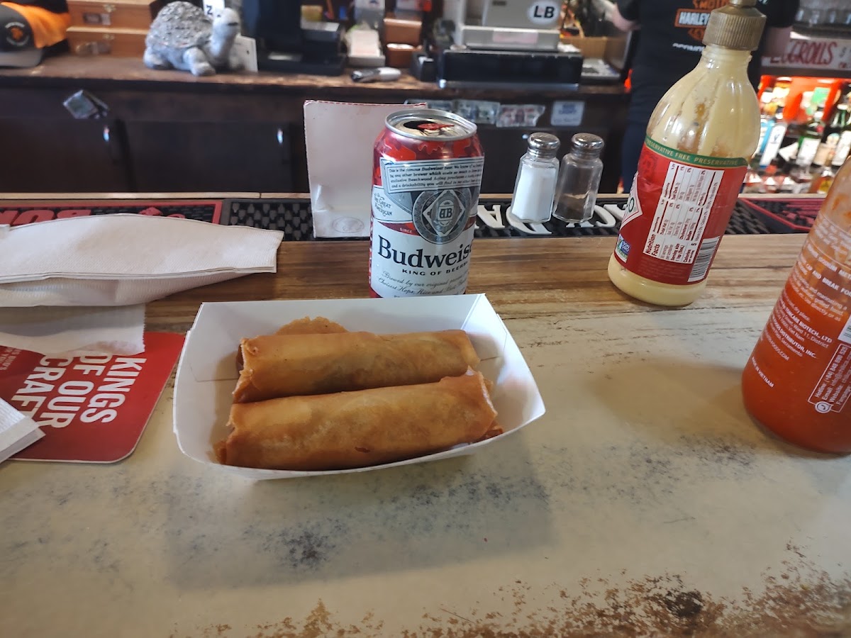 You have to try the world famous egg rolls! Stopped in just to use the bathroom and ended up staying for lunch! This is a great roadside locals bar and cafe. Staff was great to talk to and you will be surprised by all the dollars stuck to the ceiling! They said every once and a while they remove the money and donate to charity.